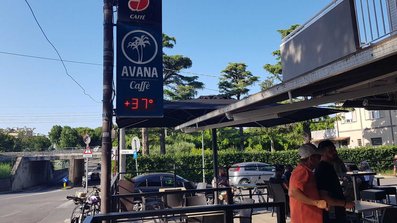 Am Strand ja,da laesst es sich gut aushalten,ansonsten gibt es ja noch die klimatisierte BeizAber +37 Grad, das ist ja die Hölle, geht da wenigstens ein bisschen Wind bei euch?