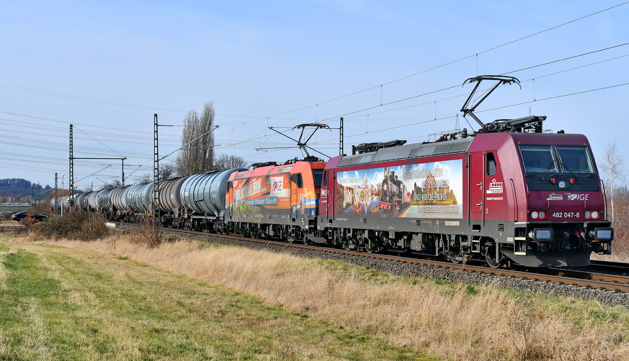 Die 482 (=BR 185 in D) ist eine sehr vielseitige, International fahr- und nutzbare Güterzuglokplattform von Bombardier, genannt Traxx. Wobei diese Lok keine Italienzulassung hat, der Zug würde entweder in Cadenazzo oder Chiasso umgespannt.