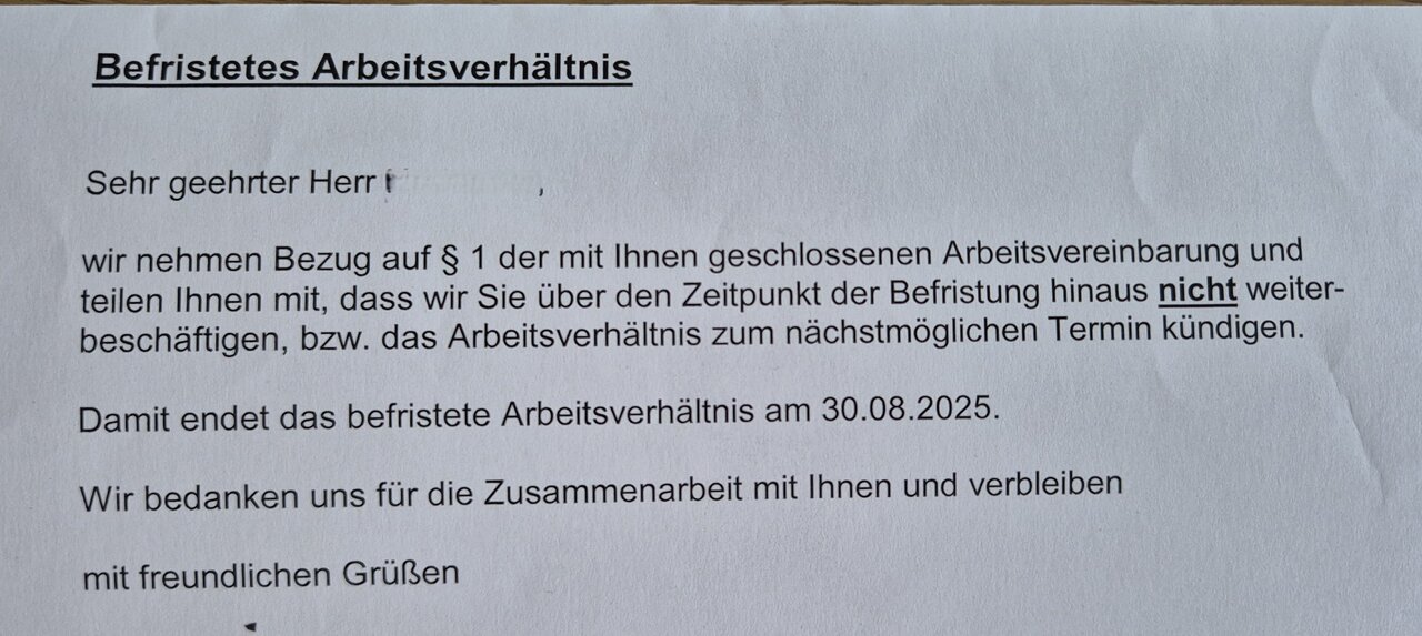 ... - ...möge "der Saft" mit dir sein...Ich finde in dem Zusammenhang mit der "Nichtweiterbeschäftigung" die Floskel "mit freundlichen Grüßen" höchst unpassend und unangemessen.![]()