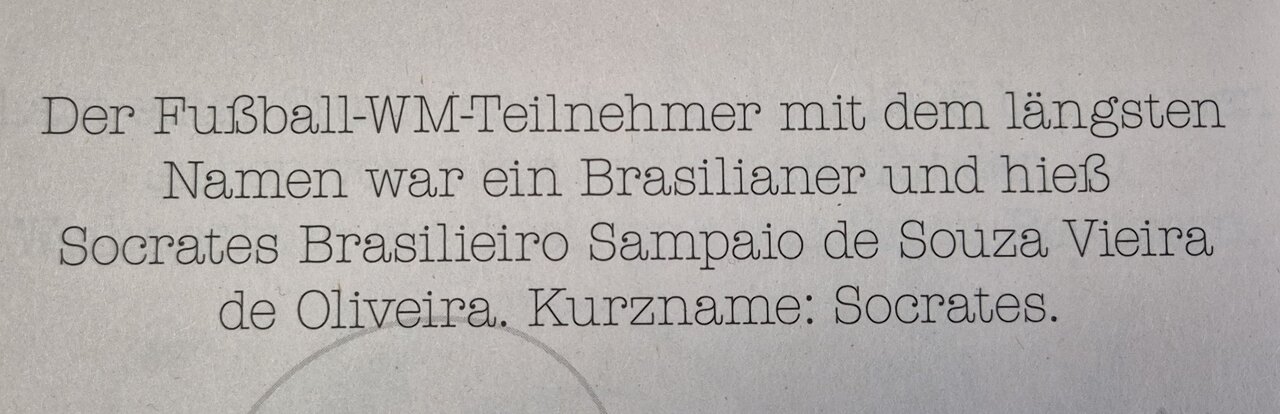 Habe damals 1982 am Fernseher einige Spiele der WM in Spanien verfolgt - aber dass Sokrates' voller Name so lang war, wäre mir nie in den Sinn gekommen.Guten Morgen...