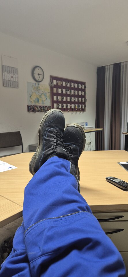 ... Und natürlich die tägliche Lektion im Büro-Yoga; heute:
