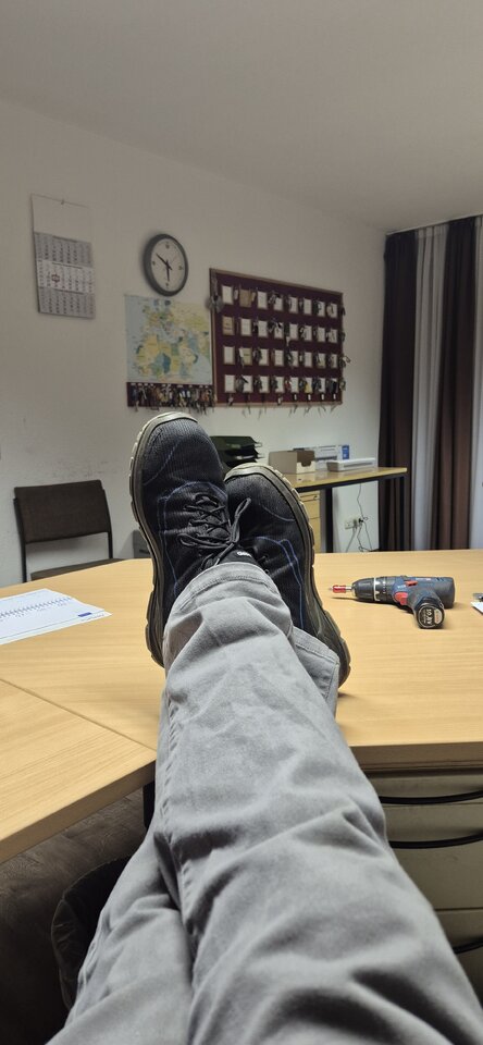 Aber ohne Kleidung wäre ein dritter Sicherheitsschuh vonnöten, richtig?Solange ich Sicherheitsschuhe habe, ist die Kleidung wurst...