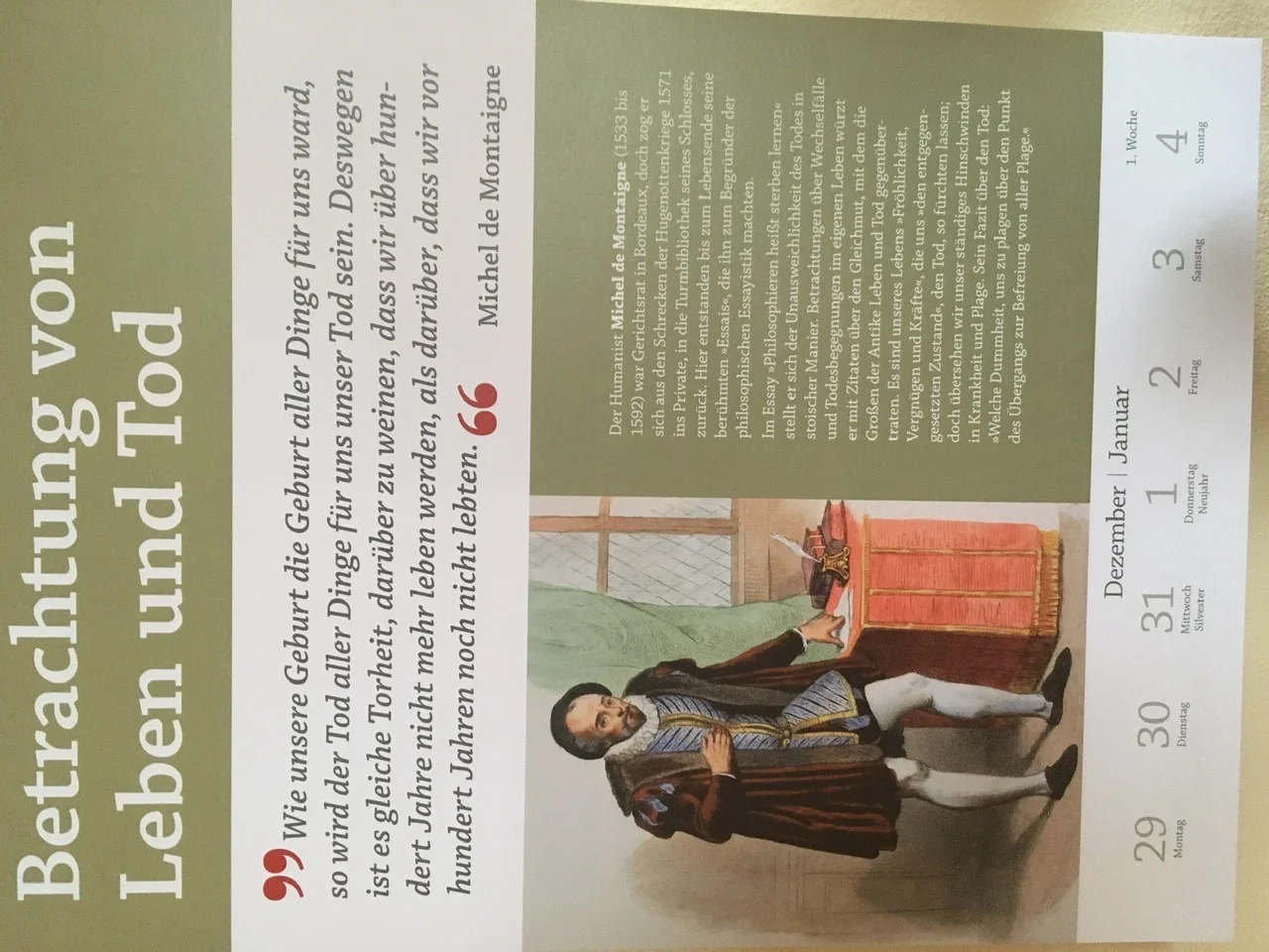 Mal mit fränkischer "Addidüüde" gesprochen.Mhm, so richtig positiv fühlt sich der Beginn in meinem Kalender nicht an. Obwohl ich verstehe, dass Montaigne recht hat.