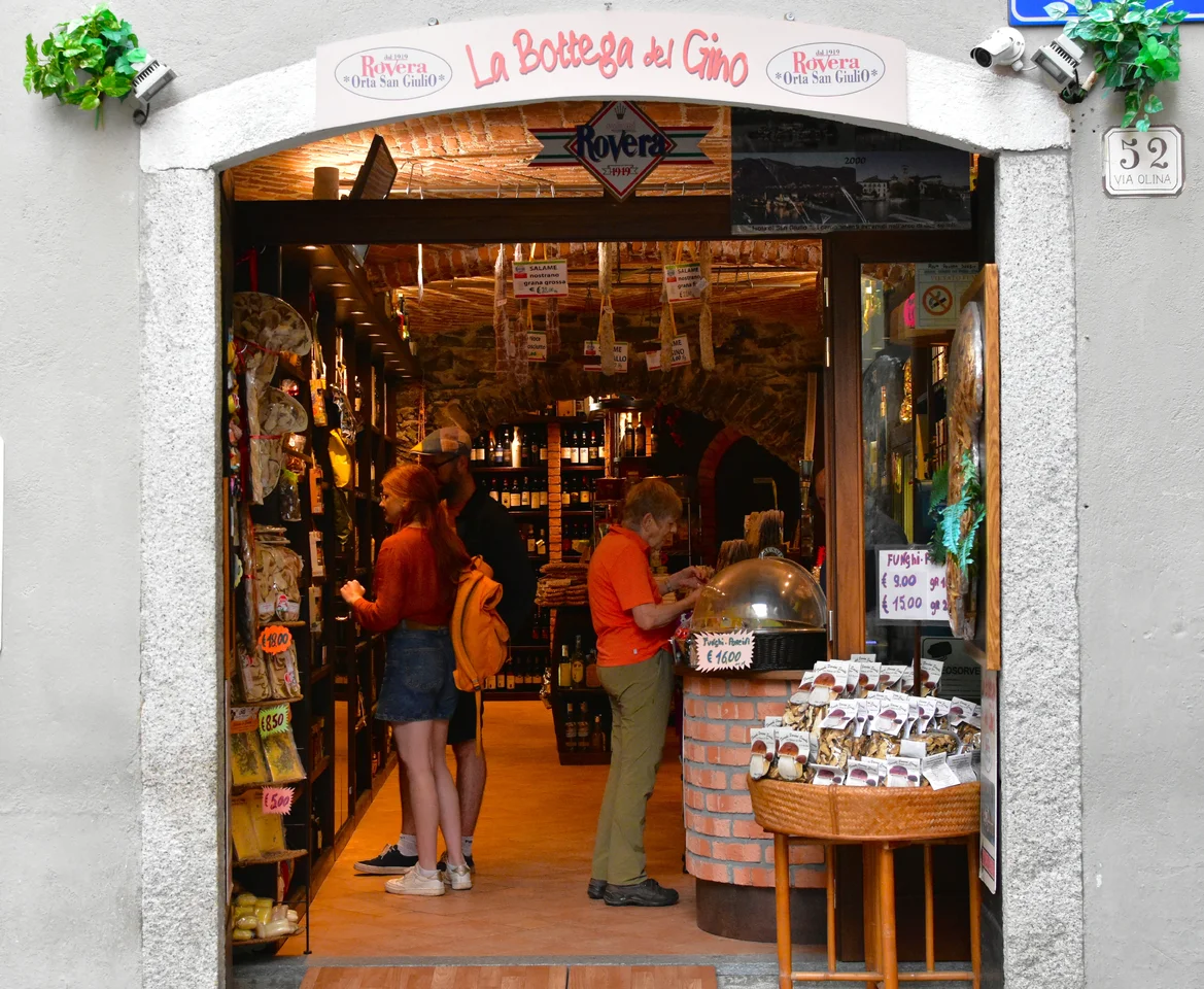 Über dem Eingang ist der Name des wirklich sehenswerten Ortes zu lesen Orta San GiulioAlso Norditalien.