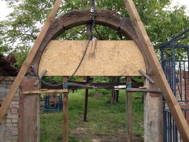 Hast du da Dollen mit eingefügt gegen den Gewölbeschub oder wird der Bogen noch eingemauert? Weil so ganz ohne alles sollte man da besser nur mit Helm drunter durch, sonst macht es am Kopf Aua...