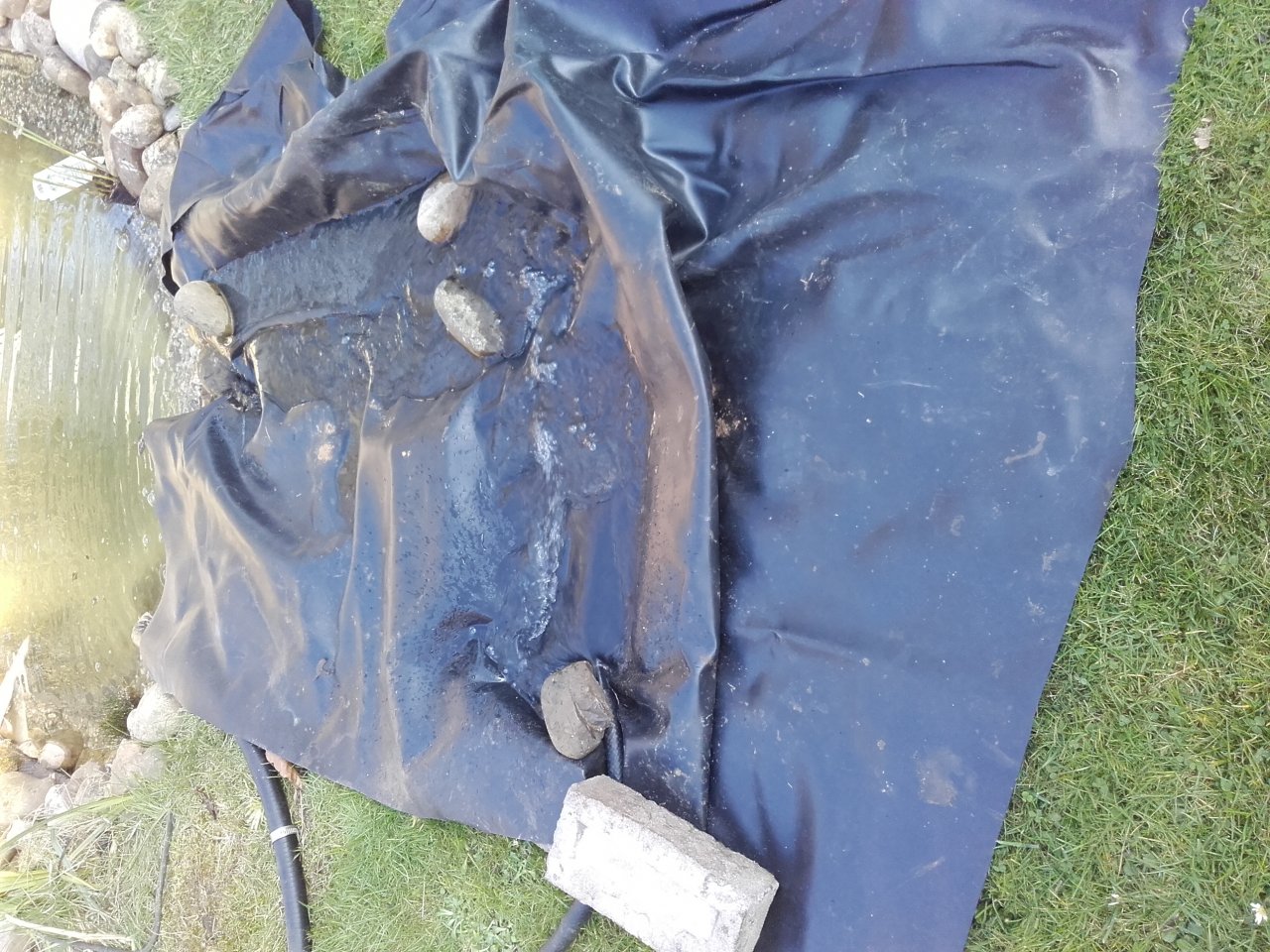 ...Ein Müllbeutel mit etwas Zierkies drauf...Ich will Dir Deine Illusionen nicht rauben, aber ich denke, Deine Frau wird ganz schnell erkennen, dass das nasse Teichfolie ist....