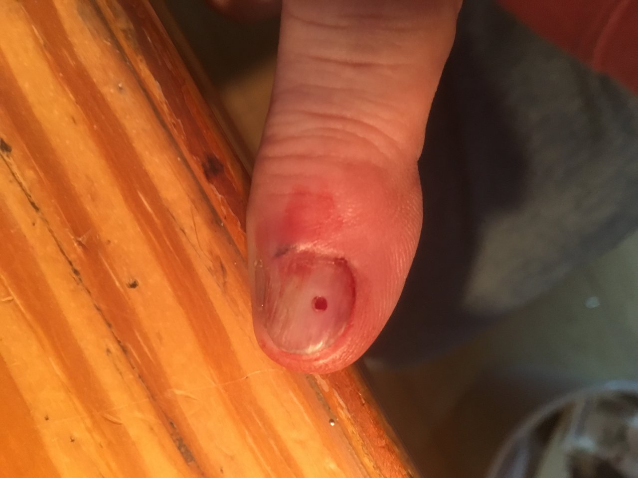 Autsch, wieso machst den so nen Quatsch,Habe mir gestern den Zeigefinger ordentlich im Garagentor eingeklemmt. Wurde blau und hatte einen eigenen Rhythmus