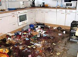 Hast du kein verfressenes Haustier, das die grobe Vorarbeit schonmal für dich erledigen könnte? Obwohl...wenn 'ne Horde Hunde die komplette Küche von oben bis unten vollgesabbert haben, ist's bestimmt auch nicht besser.Und wer muss da noch putzen heute, vor der Probe? Ich.![]()