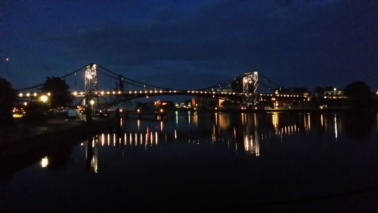 Gestern, blaue Stunde in Wilhelmshaven (K-W-Brücke). Es war traumhaft schön.