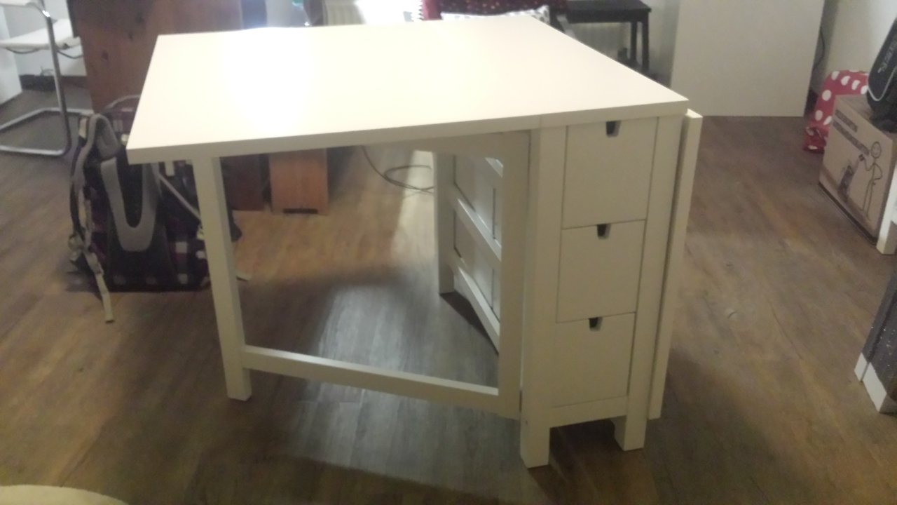 Ach deeer Tisch ist das. Und damit haste Dich so angestellt?So, das Miststück steht. Hat sich gesträubt bis zum Schluss, diese Diva!