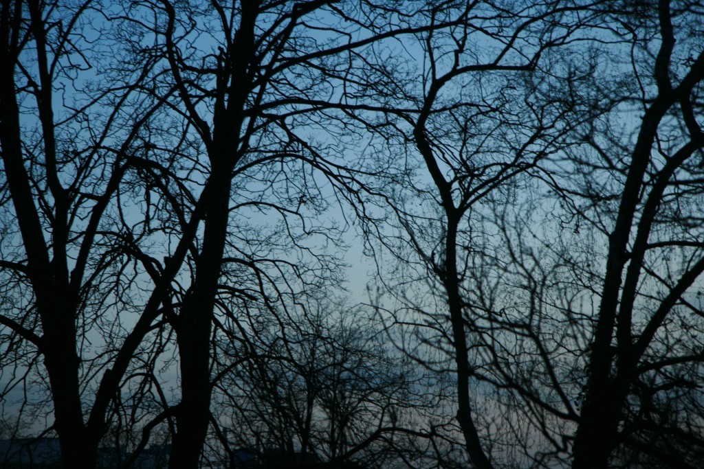 Gefällt mir sehr! Das zweite gefällt mir am besten.Bevor ich nicht mehr dazu in der Lage bin vor lauter Saluti und zum Wohli und Prosti schnell noch die Fotos, die ich vorhin während der späten Dämmerung aufgenommen habe. Ich fand die Zeichnung der kahlen Äste einfach faszinierend:
