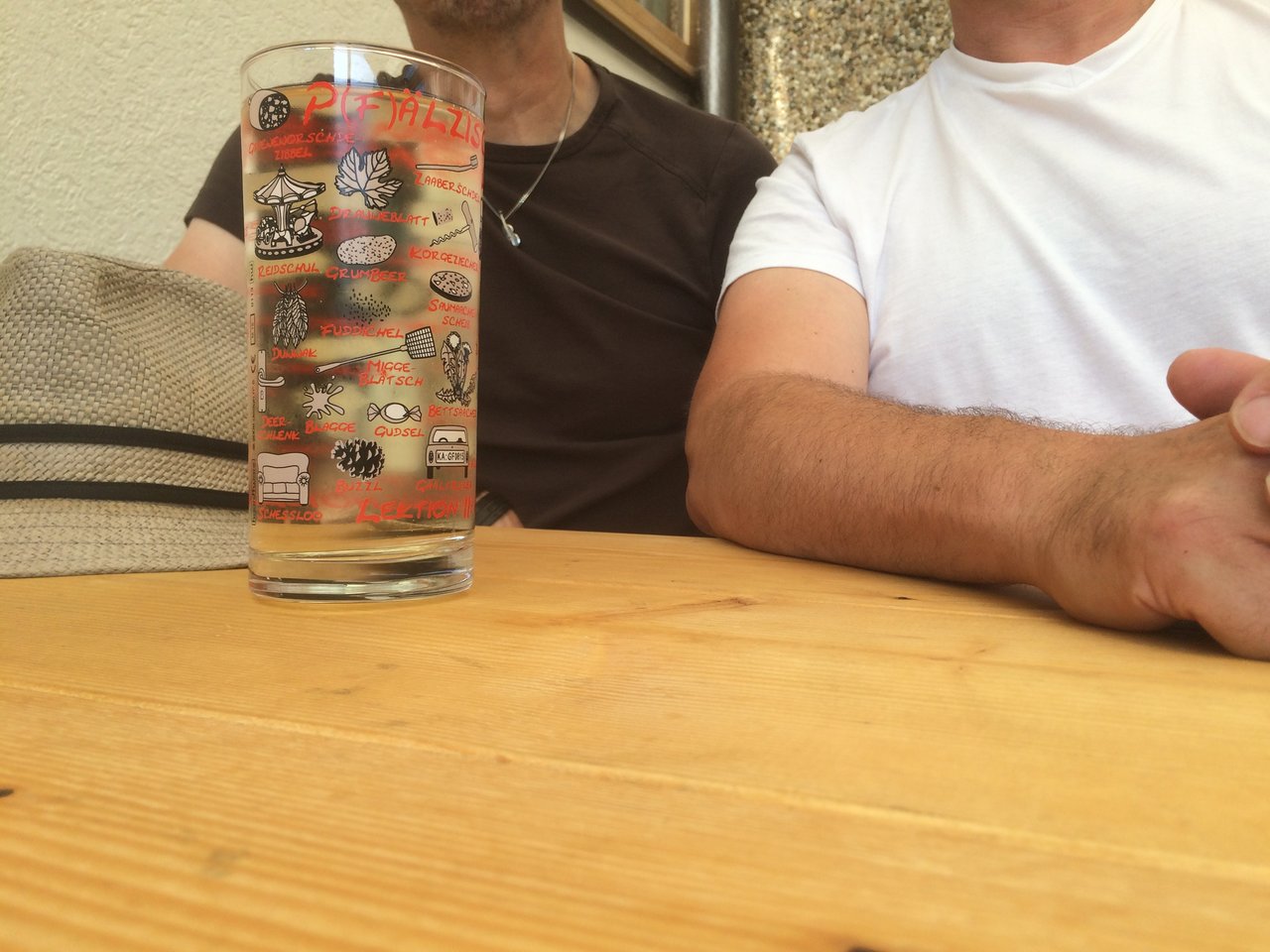 Der wahre Pälzer rührt den Schorle an und bietet natürlich ganz selbstlos den Schorle erst mal in der Runde an.Und es entbrannte ein harter Kampf, wer denn jetzt zuerst trinken darf.