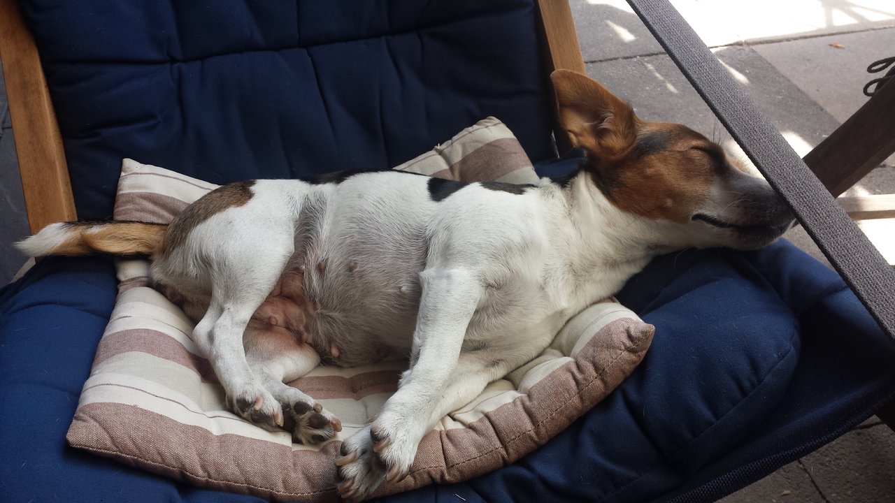 Na - bei dem Kurzhaarschnitt dauerts bis ihr warm wirdErstaunlicherweise sucht sie sich immer noch Sonnenplätzchen aus.