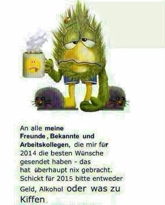 von mir für Euch alles Gute und einen guten und gesunden Start ins Jahr 2015, so dass Ihr noch 100 Jahre hier sitzt und bei Bier klönt. Bei mir kommen Zeiten der Veränderungen, weshalb ich nicht mehr viel Zeit habe hier zu verweilen. Also machts gut.