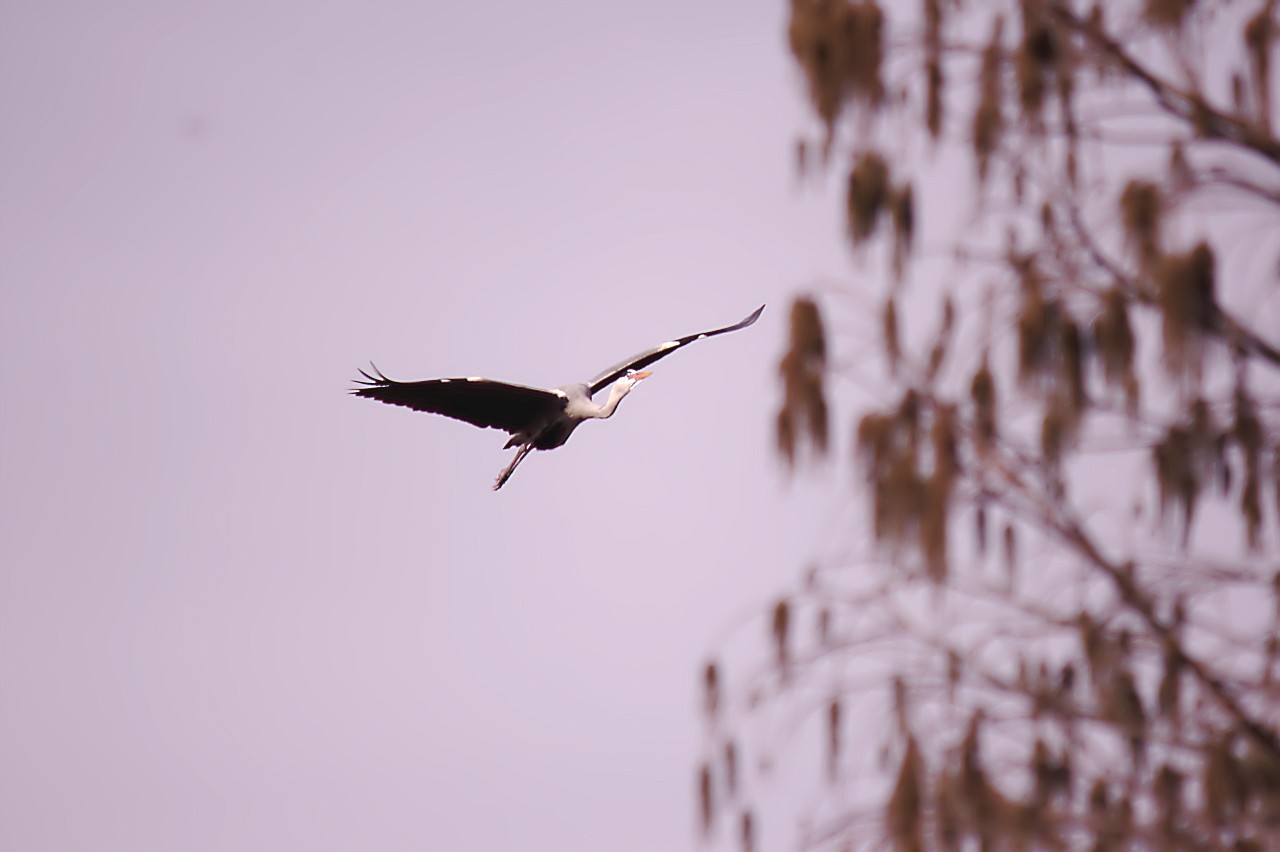 Da oben fliegt ein Reiher,