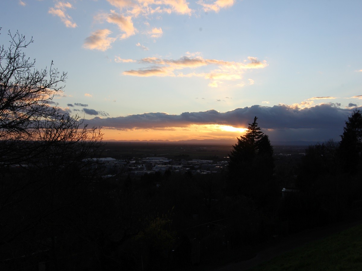 Hier mal nur ein Bild mit Autokorrektur. Vordergrund etwas heller, Himmel farbiger und die Sonne leuchtet trotzdem durch die dunklen Wolken. Das kann man jetzt noch variieren oder nur auf einzelne Bildbereiche anwenden, aber nur mal so als Idee (kennst du ja schon aus der Parkbank).