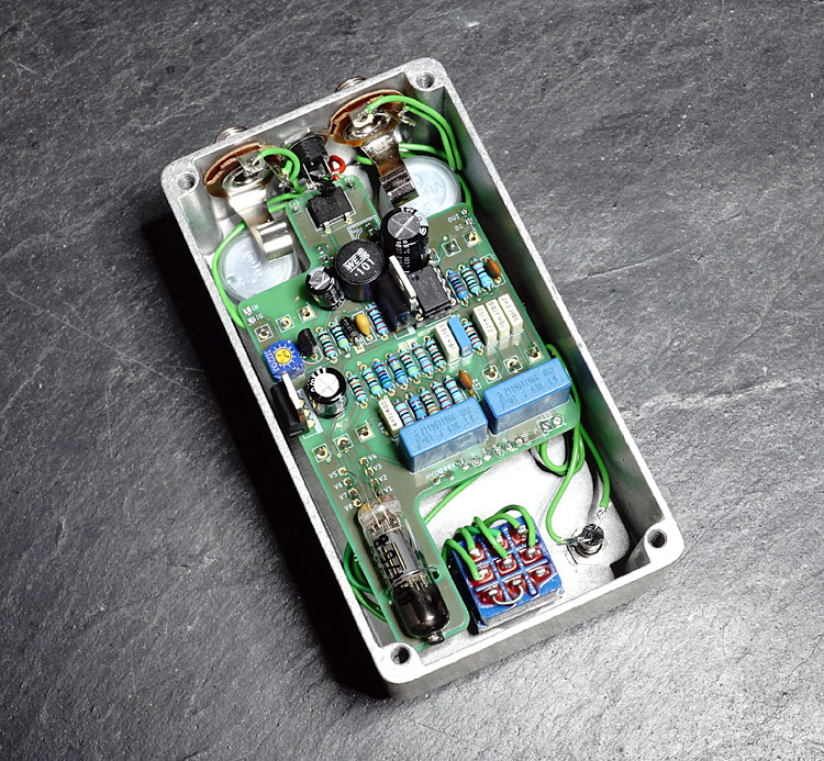 Nur meine kleine Erfahrung mit Röhrentretern: Ich hatte mal den GP Lightstone Emperor. Der hatte 3 x 12AX7 drin. Das Ding wurde im Dauerbetrieb schön heiß. Also 1s Berührung ging noch. Aber das Innenleben, der LDO und (+Kondensator) vor allem, der den Heizstrom zur Verfügung stellte, wurde schweinewarm. Darunter litt dann auch die HV-Spannungsversorgung (Nebengeräusche -> nix Studioqualität). Alles extrem dicht gepackt. Und riesig war das Ding dann trotzdem noch. Röhren und Treten soll einfach nicht zusammenpassenIrgendwie bin ich auf den Geschmack gekommen, es mal mit Röhrentretern zu versuchen...
