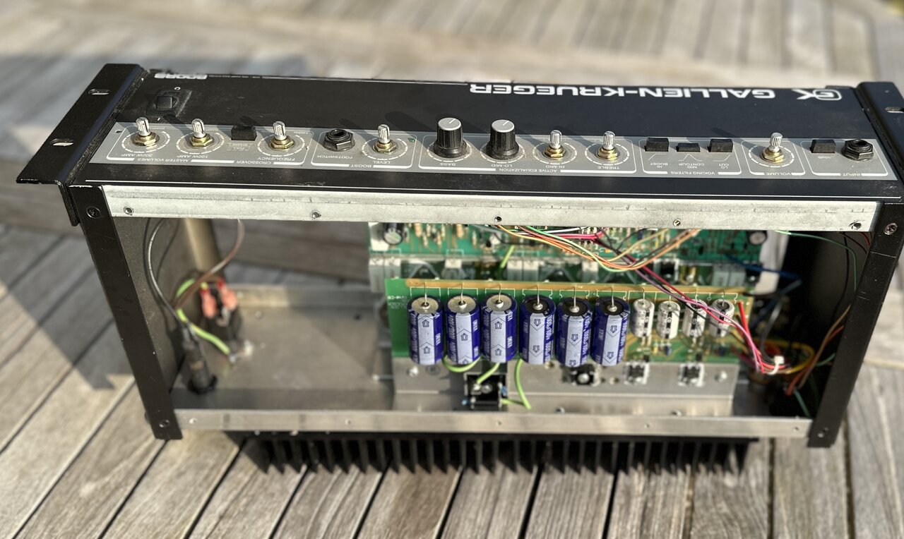 Dieses Mal kein Pedal, sondern mal ein Amp. Einer meiner Lieblingsamps. Es handelt sich um einen (fast verstorbenen) Gallien-Krueger 800RB-MKII. Der optische Zustand ist eigentlich recht gut, gelitten haben muss der Amp aber trotzdem.