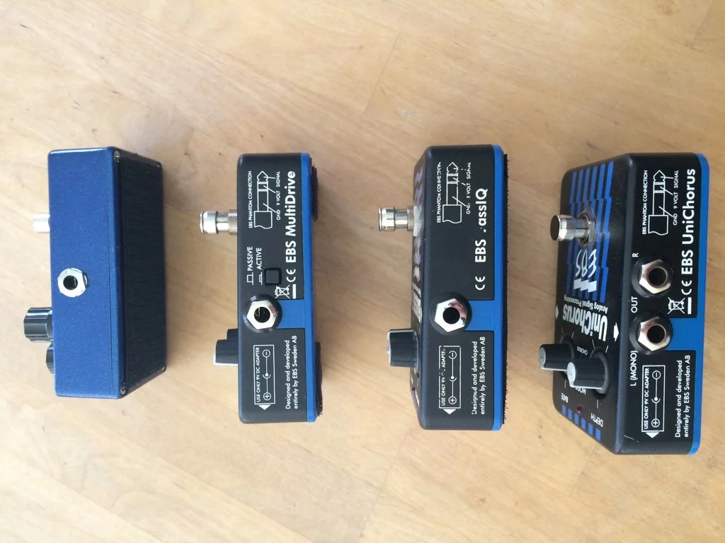 Alle Effekte befinden sich in einem sehr guten Zustand, waren mit Klett auf einem Pedalboard befestigt und wurden wenig benutzt. Alle Kontakte sind top in Ordnung (keine Wackler) und die Potis laufen sauber und knackfrei.