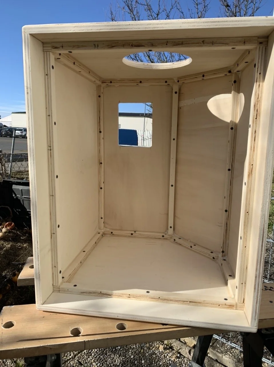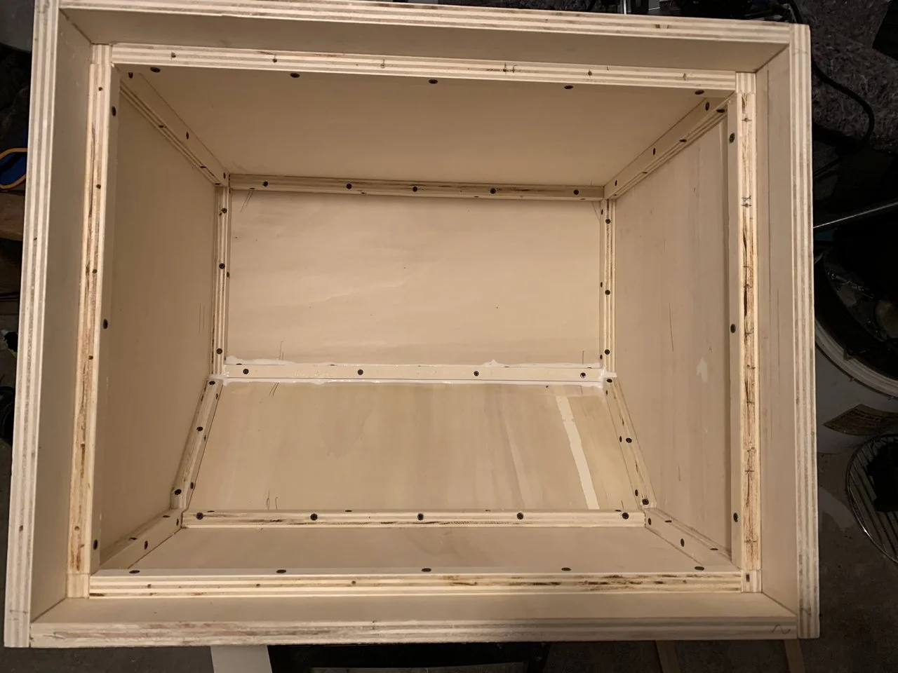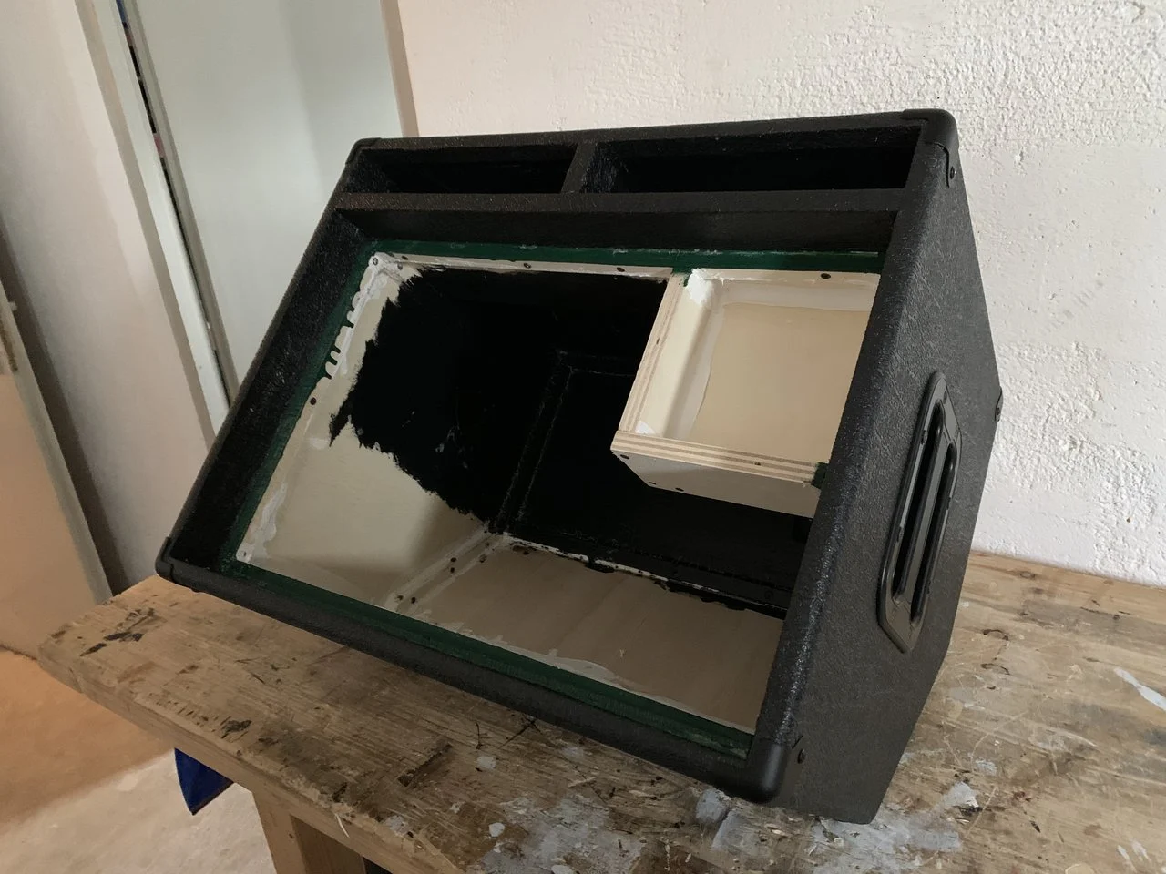 Das ist übrigens das Seitenteil der Box mit dem Bassreflex-Shelf.