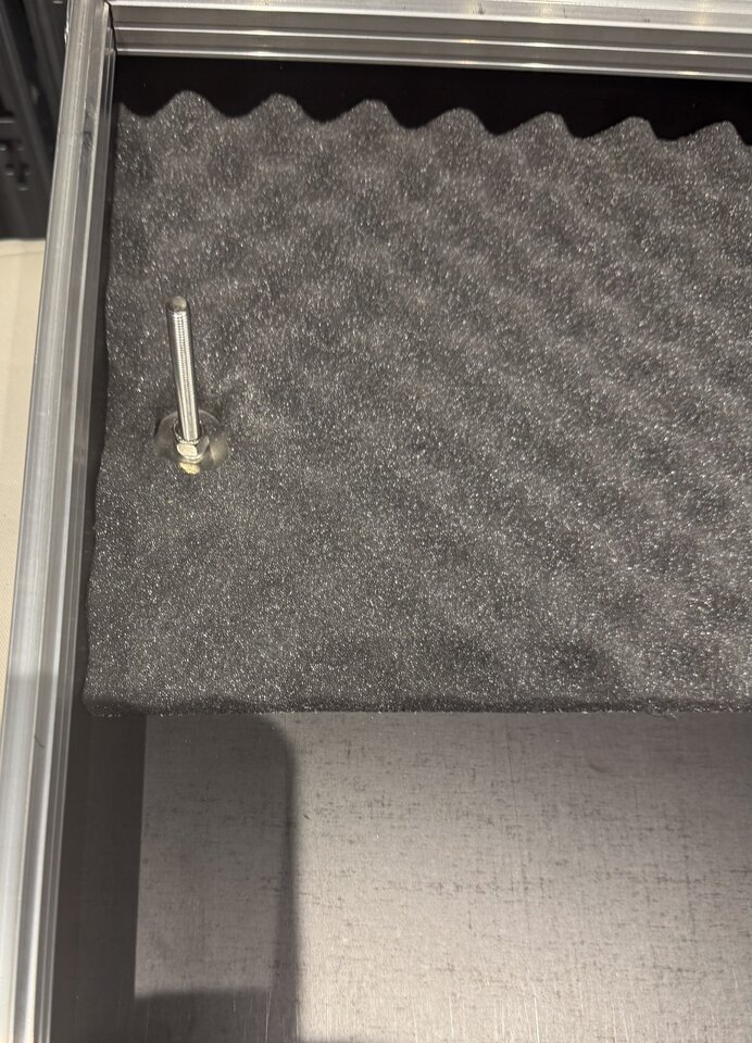 Schöne Idee! Aber ich hätte Angst, dass das Abdrücke gibt. Vielleicht kann man die Hutmuttern noch irgendwie gummieren oder so? Gibt doch teils Kunstoffkappen für Muttern.Ich habe ein Mixer-Case mit Aufsteller für das Allen&Heath WZ3 16 und das Problem, dass währen des Transportes der Mixer sich im Case aufstellen kann (er hat diesen Rasten-Aufsteller) und sich die nicht abschliessbare Rackschublade immer öffnet.