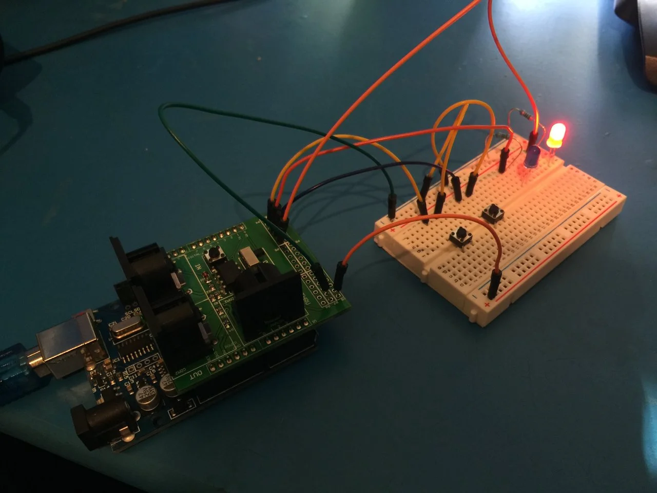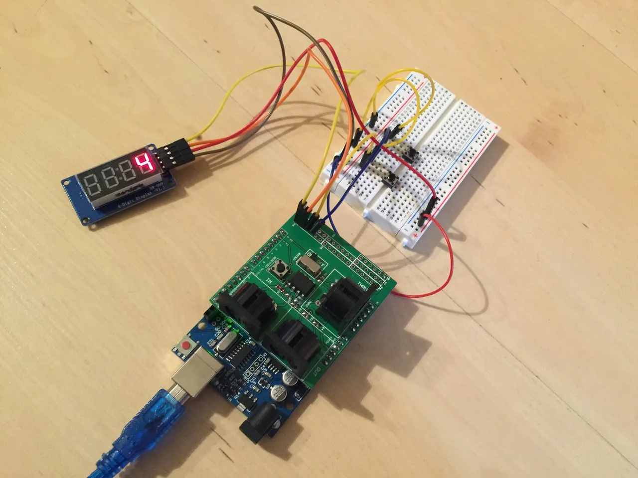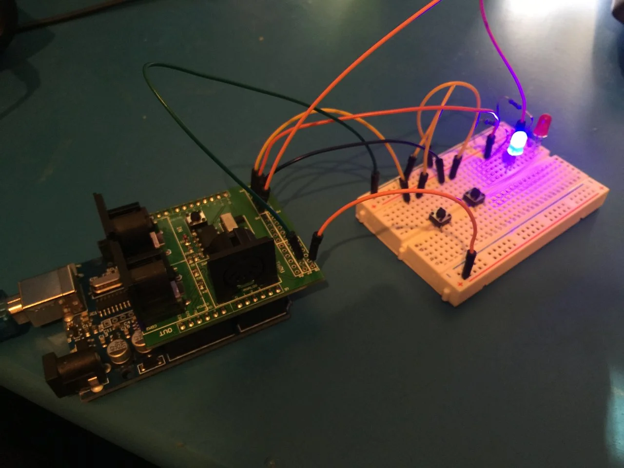 0,1 sind fest auf der Platine mit der Shcnittstelle verknüpft und werden über den Schalter verwaltet. Dann kommen 2 und 3, die brauchen wir nachher für das Display. Ab 4 geht es dann mit den LEDs und SCHaltern los. Immer schön im Wechsel Schalter, LED, Schalter, LED...