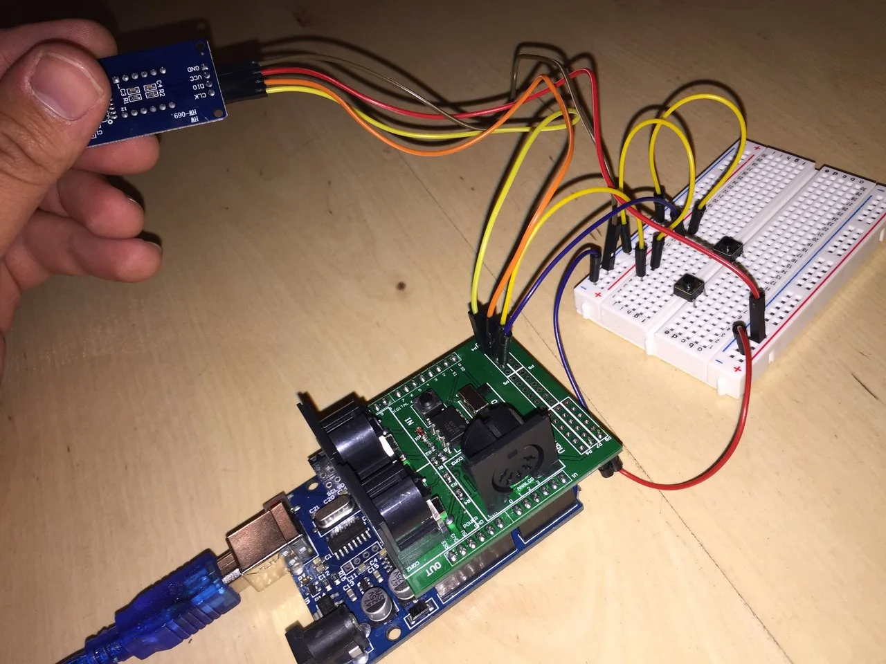 Arrrgggg, jetzt erst gesehen, du hast die Pins direkt in das erste Loch gesteckt. Anfangen tut das aber laut Programm mit der 4, das ist das 3. Loch...