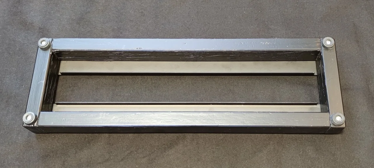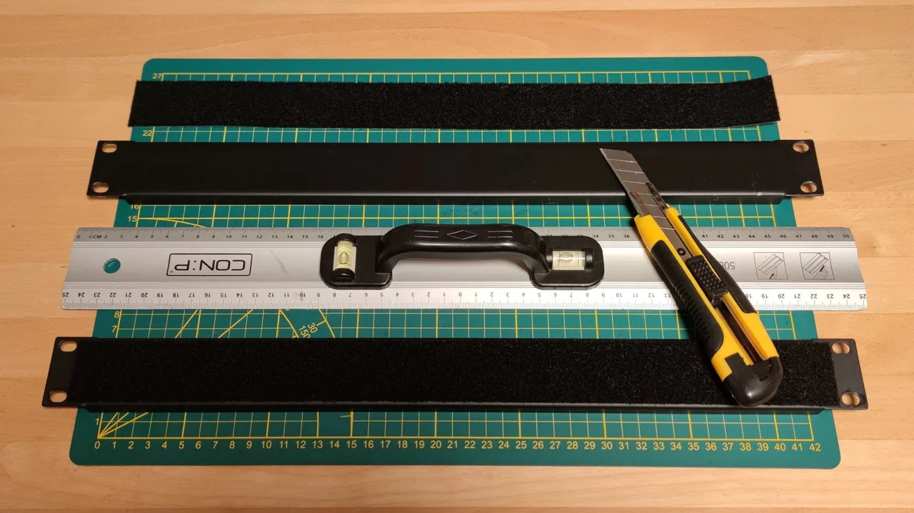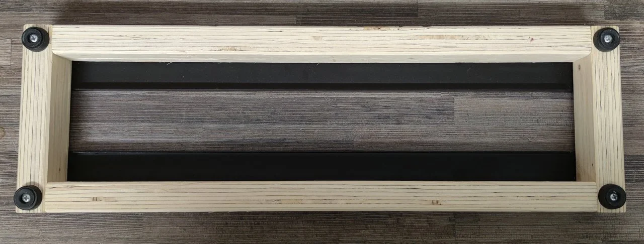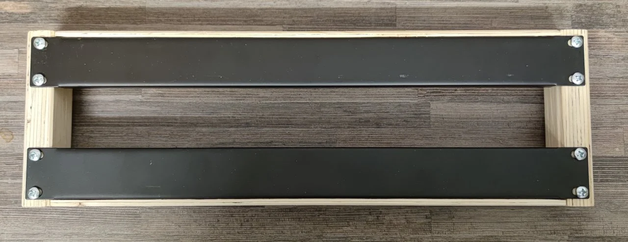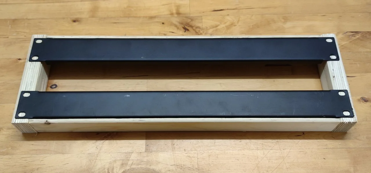 Da ich meine finanziellen Mittel lieber für Effektpedale verwende als für teure Pedalboards, hab ich mir eine günstige DIY Lösung überlegt. Für einreihige Boards mit vorwiegend Boss-Format Pedalen, halte ich mich ungefähr an die Abmaße des Pedaltrain NanoPlus Boards. Die wichtigsten Bestandteile sind 2 Stück 1HE 19″ Rackblenden und 25x50mm Kantholz. Gummifüße, diverse Schrauben, Velcro, etc. setze ich mal voraus. In meinem Fall wird das Board, bedingt durch die Breite der Rackblenden, 15 cm x 49,5 cm.
