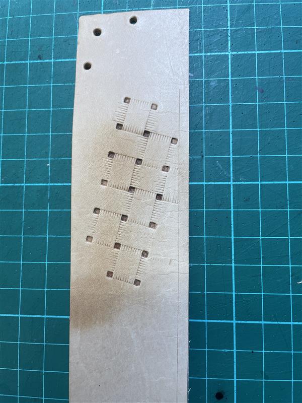 Punziereisen mit einem schönen Basket Weave (Craftplus X2850), ein paar Testläufe zu Anordnung und Farbgebung und dann frisch ans Werk: