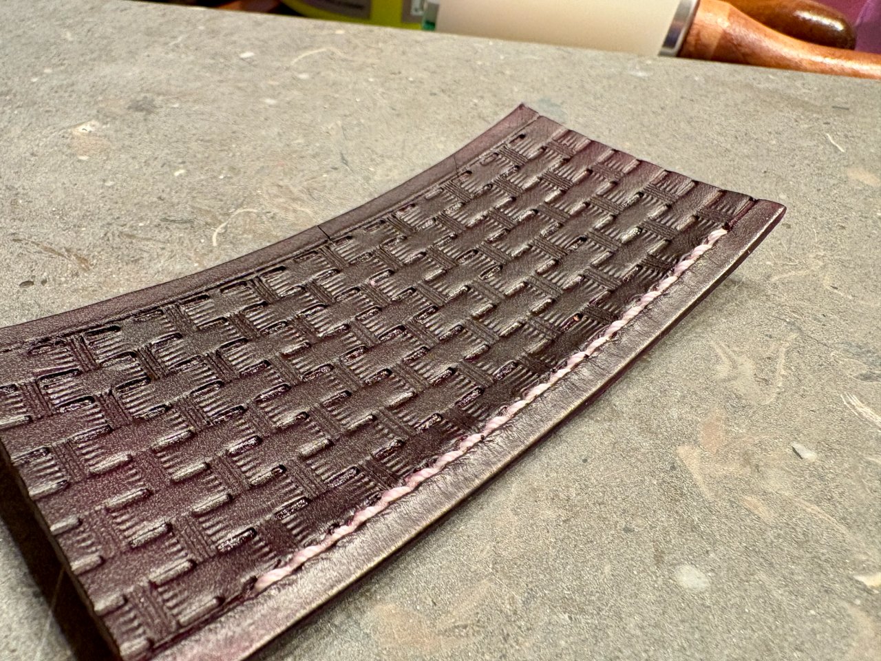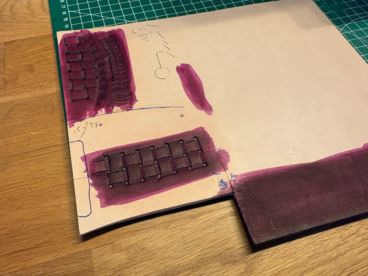 - Alles mit Fiebing's Leather Dye gefärbt (1 Teil hellblau zu 30 Teile rot)
