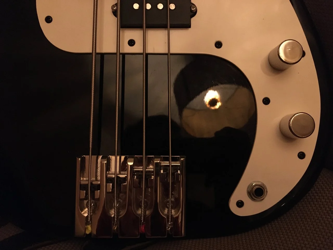 Dabei soll der halsseitige Pickup auf Preci-Position liegen und der hintere ca. in M-Position landen; beide PUs in reverse-P-Manier angewinkelt.