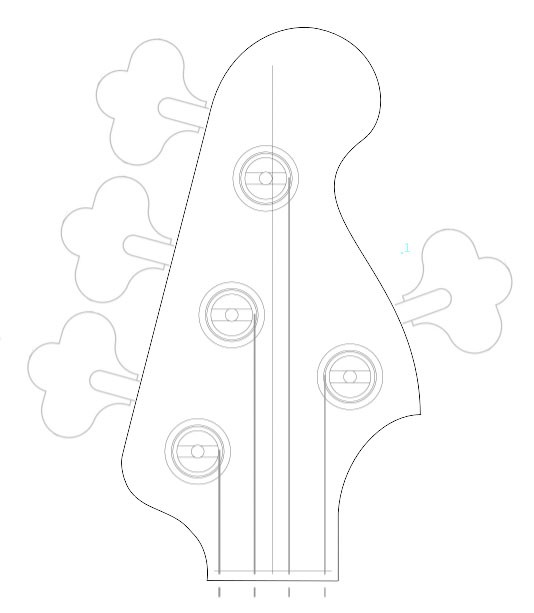 Und hier die Zeichnung vom Headstock, wohl die kritischste Sache ....