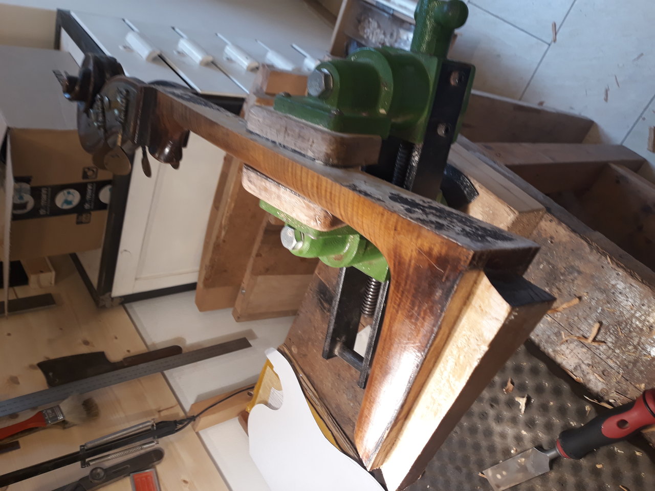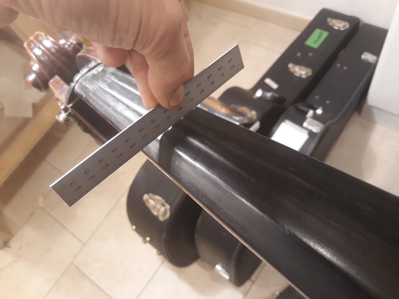 Booah! Das gekerbte Griffbrett ist ja echt geil.Eine gröbere Kontrabass Reparatur.