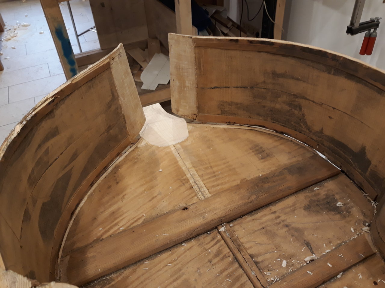 DA sind meine Wollmäuse geblieben!Eine gröbere Kontrabass Reparatur.