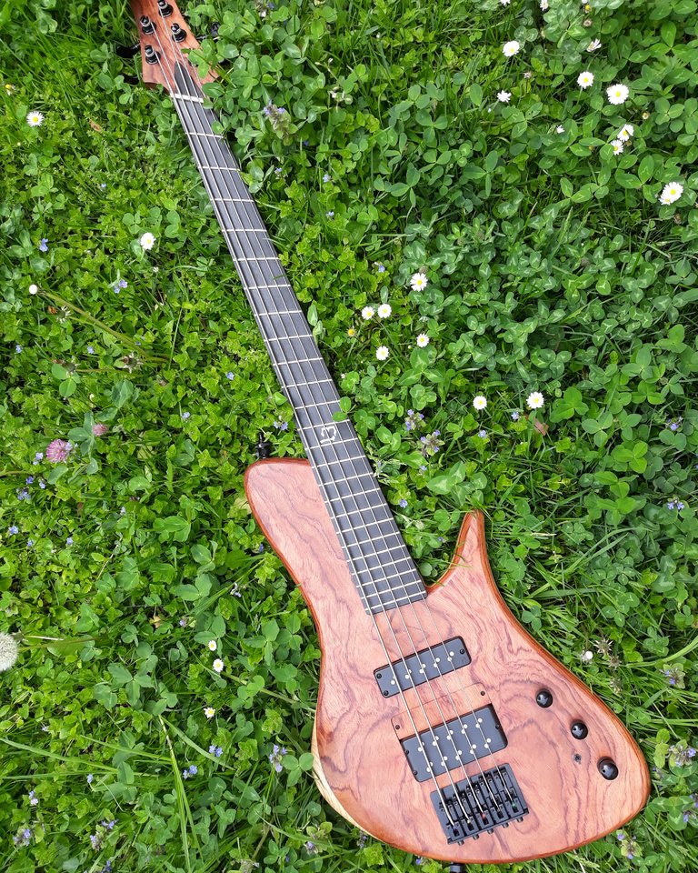 Und das Bubinga Top! Irre schön. Wenn ich da an meinen 90er Jahre Schack mit Bubinga Korpus denke ... Der sah schon etwas langweiliger aus.
