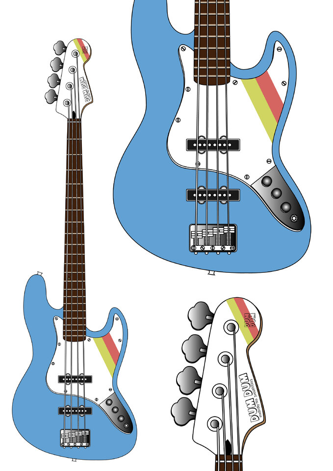 Anfang des Jahres habe ich Nils kennengelernt, der über seine Marke "DUMDUM" in seiner Werkstatt in Hannover individuelle (P-)Bässe baut. Auf der Website findet Ihr eine Reihe von Beispielen, hier zwei ausgewählte Instrumente, die ich seeehr gelungen finde. Der Preis mit ab ca 1.200 EUR ist dafür eigentlich viel zu niedrig.
