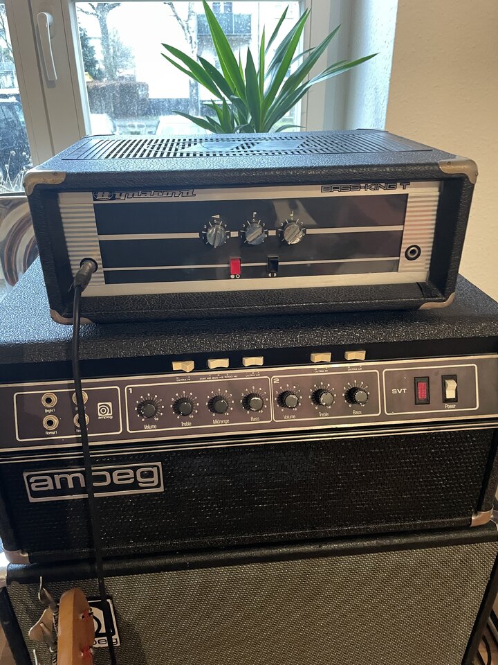 Ja genau, der hat eine ECC 81 in der Vorstufe… und 2 Telefunken EL 34 in der Endstufe. Klingt wirklich gut der Kleine. Beleuchtung muss ich noch fixen (lassen). Die Box ist eine Ampeg B-40 mit 4x10“ Eminence Square Magnets, Ende siebziger würde ich sagen.Ist das der mit der Röhrenvorstufe? Und ist das eine 410HE?