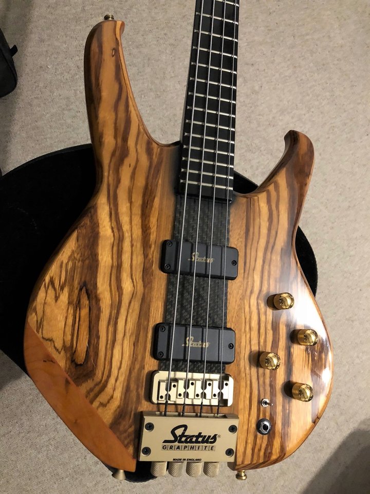 Nachdem ich meinen optisch spektakulären Dingwall und den Fretless Musicman vertickt hab, musste ich mir einen zweiten Status Graphite zulegen. Der ist wirklich lecker. Bespielbarkeit ist sensationell aber der Sound halt ein wenig steril, aber auch ganz nett. Er verzeiht keine Fehler, eine richtige Diva