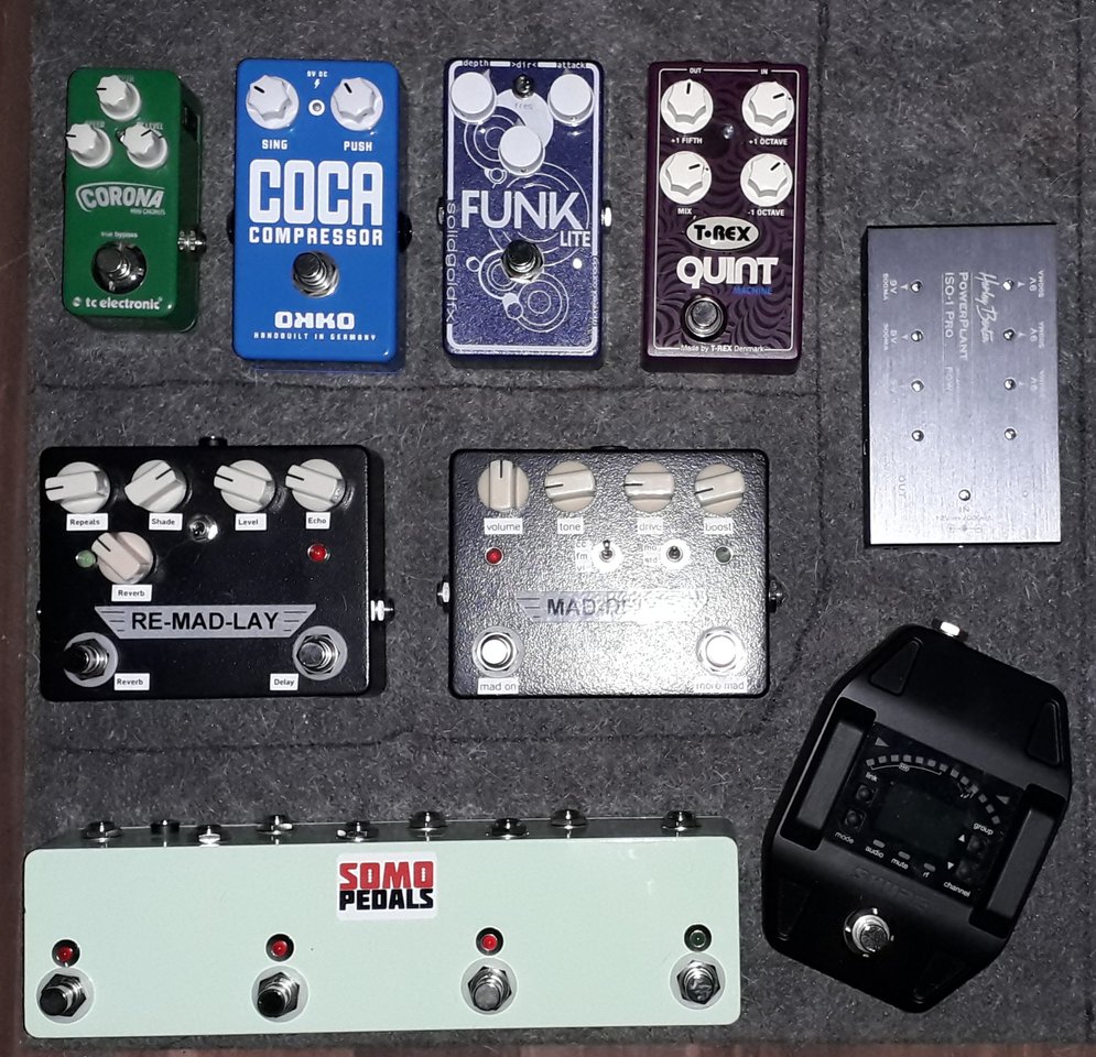 Wenn ich es richtig verstehe willst du drei Ebenen. Kannst dir überlegen eine Ebene entfallen zu lassen und die Effekte die über den Looper geschaltet werden und nicht oft verstellt werden unter die 2te Ebene zu packen.So wird angeordnet