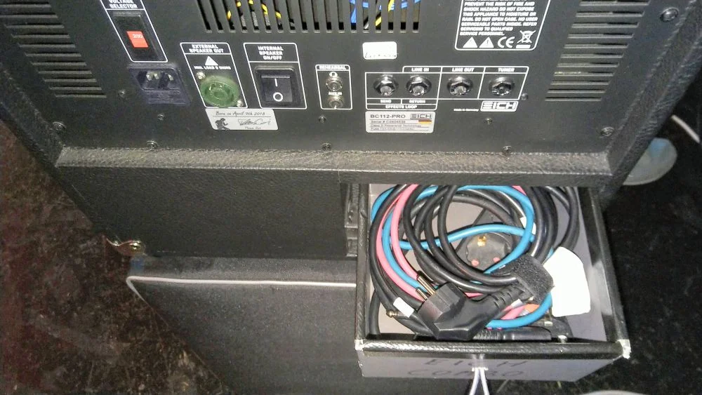 + Das Markbass-Schild habe ich abgeruppt, weil es bei Reggae immer am Gitter geklappert hat. Da ist das Eich-Schild nicht so dusselig angebracht.
