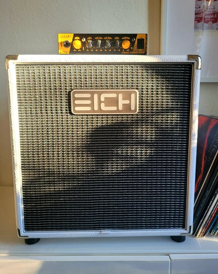 Markbass-Zeug u. Ä. Ich konnte beide mit meinem T-1000 vor Ort ausprobieren. Die 410 war eindeutig druckvoller, wenngleich mir der Charakter der 212er ebenfalls zusagte. Letztere klapperte übrigens irgendwie beim Spielen, was aber nicht das Ausschlusskriterium war. Die 410er habe ich nun adoptiert. Mein angestrebter Ampeg-Sound kommt allerdings aus der Dose (Classic Bass Preamp). Das schafft der T-1000 nicht aus eigener Kraft - ist aber wohl auch nicht sein Anspruch. Dafür klingt das Ganze nun recht amtlich. Nachdem die Basics also schon mal stimmen, steht nun zeitnah die 212L von EICH oder TecAmp auf dem Speiseplan. Leider werden diese offensichtlich nicht bzw. nur selten angeboten.