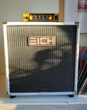 ) ein paar Fragen zu den EICH Cabinets hatte und in der Folge einige hilfreiche Antworten erhielt, poste ich mal ein Update. Die grundsätzliche Überlegung war herauszufinden, welche EICH/TecAmp-Cabinets in Verbindung mit dem T-1000 meine Marshall VBC412s und Ampeg SVT200Ts ersetzen könnten. Ziel ist natürlich eine Transporterleichterung. In einem lokalen Musikfachgeschäft fand ich in einem lauschigen Eckchen doch tatsächlich zwei (betagte aber nagelneue) einsame TecAmp-Cabinets, eine 212M und eine 410L, umringt von Markbass-Zeug u. Ä. Ich konnte beide mit meinem T-1000 vor Ort ausprobieren. Die 410 war eindeutig druckvoller, wenngleich mir der Charakter der 212er ebenfalls zusagte. Letztere klapperte übrigens irgendwie beim Spielen, was aber nicht das Ausschlusskriterium war. Die 410er habe ich nun adoptiert. Mein angestrebter Ampeg-Sound kommt allerdings aus der Dose (Classic Bass Preamp). Das schafft der T-1000 nicht aus eigener Kraft - ist aber wohl auch nicht sein Anspruch. Dafür klingt das Ganze nun recht amtlich. Nachdem die Basics also schon mal stimmen, steht nun zeitnah die 212L von EICH oder TecAmp auf dem Speiseplan. Leider werden diese offensichtlich nicht bzw. nur selten angeboten.