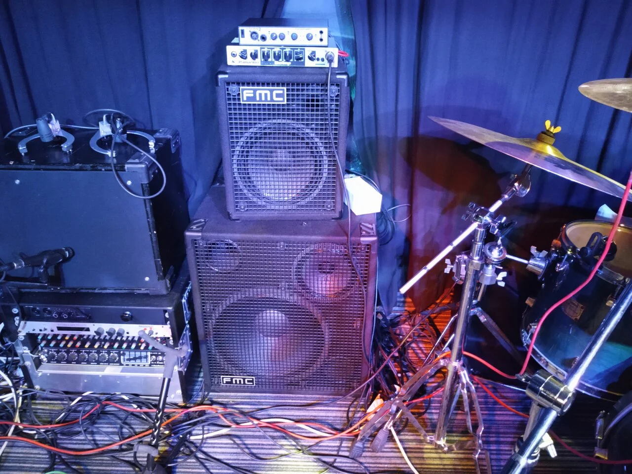 Ich habe meinen Warwick dabei gehabt und div. Amps gespielt. Unter anderem auch Aguilar, Darkglass und einen Eich T-1000. Der Sound ein Traum. Meine Corvette klang pur einfach nur geil und mit Neck Pickup waren super cleane Akkord Sounds möglich. Das fanden mein Begleiter und ich gleichermaßen beeindruckend. Allerdings fiel uns eben ein deutliches Rauschen auf, wenn ich keine Saiten anschlug.