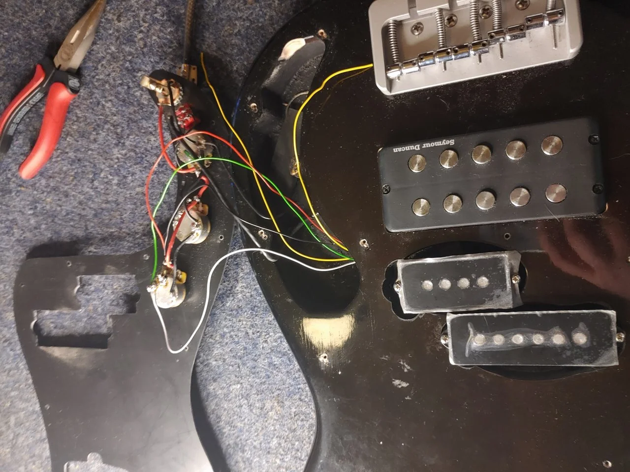 Der P Pickup war irgend eine China-Kiste, das hat mich dann doch etwas fertig gemacht, wie man in einen neu um die 2000 Euro kostenden Custom Bass so was einsetzen kann.