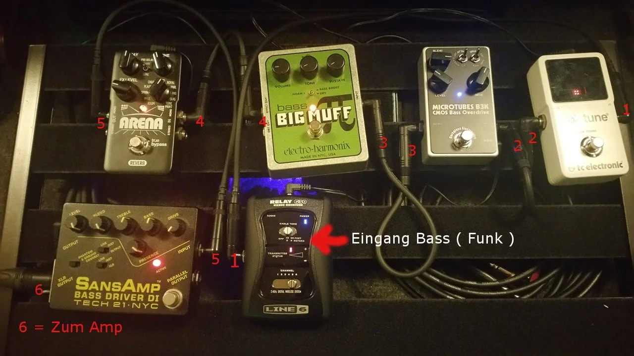 Preamp im Effektweg. Preamp ganz normal über Schleife send / Return bedeutet das Signal durchläuft beide Preamps. Preampeingang mit basssignal und Ausgang in den Return bedeutet nur der Preamp läuft, der interne Preamp des Amps ist aus, da kein Signal vorne rein kommt.