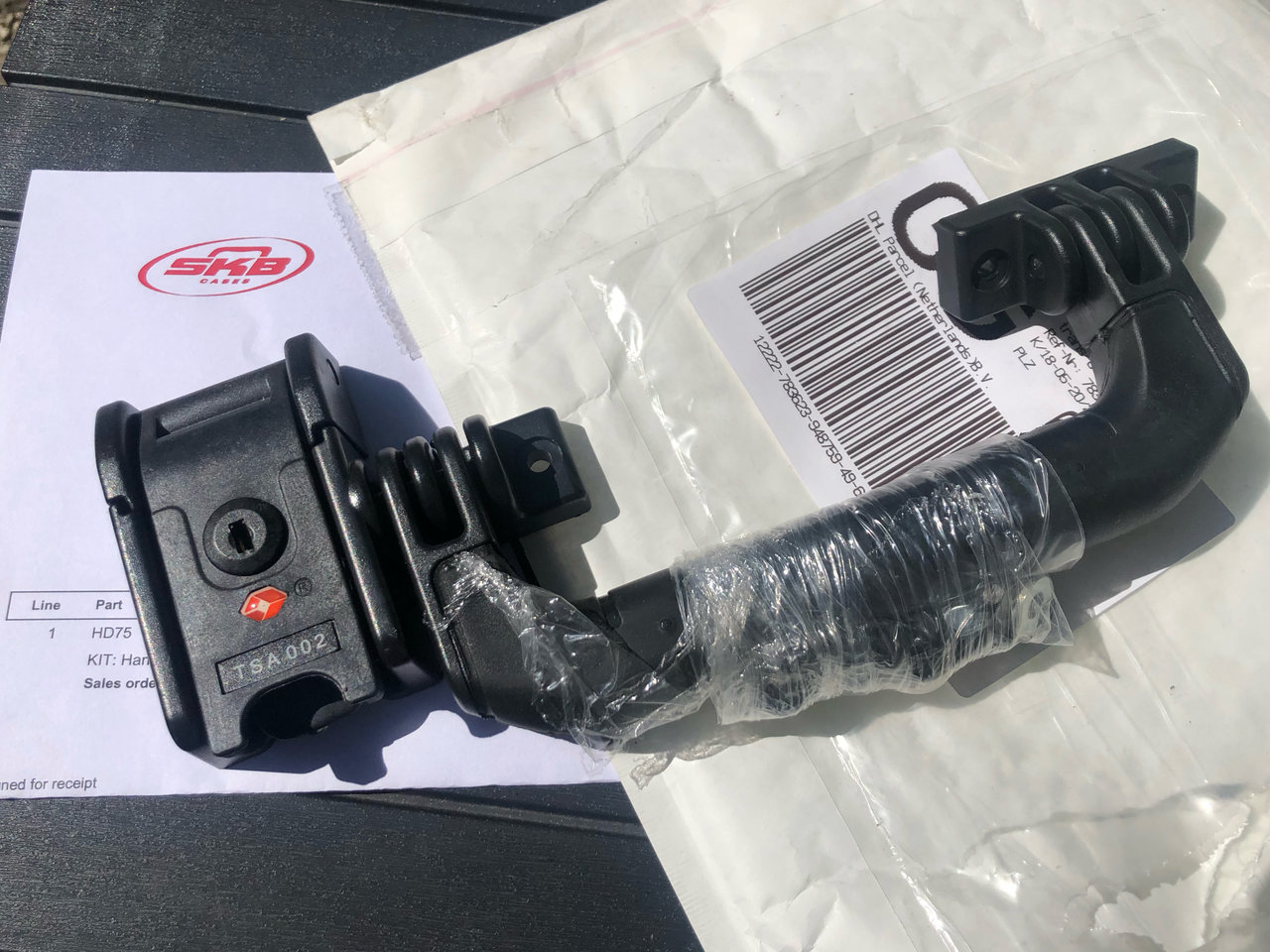 Niegelnagelneuer Griff, inkl. Schloß - Freitag telefoniert, heute da aus den Niederlanden (Sitz von SKB Europe) - schnell, einfach, umkompliziert!
