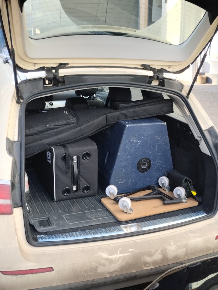 Standard Equipment für alle Anwendungen. Wenn es größer wird nehme auch nicht mehr mit, weil läuft dann über PA. Der blaue 118 Subwoofer ist für die Gesangsanlage