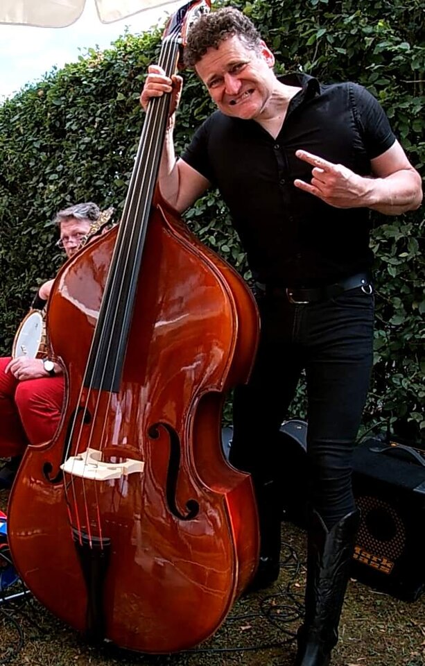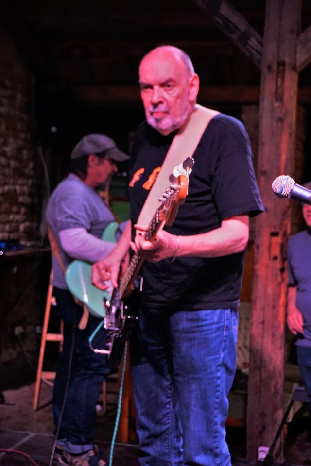 Das ist zwar keine Mucke, da sehe ich sowieso immer gleich aus. Da sitze ich bei der Probe. War entspannt heute, wir spielen "Mary Ann" und ich konnte der Band die Basslinie von der Ralf-Bendix-Version unterjubeln.