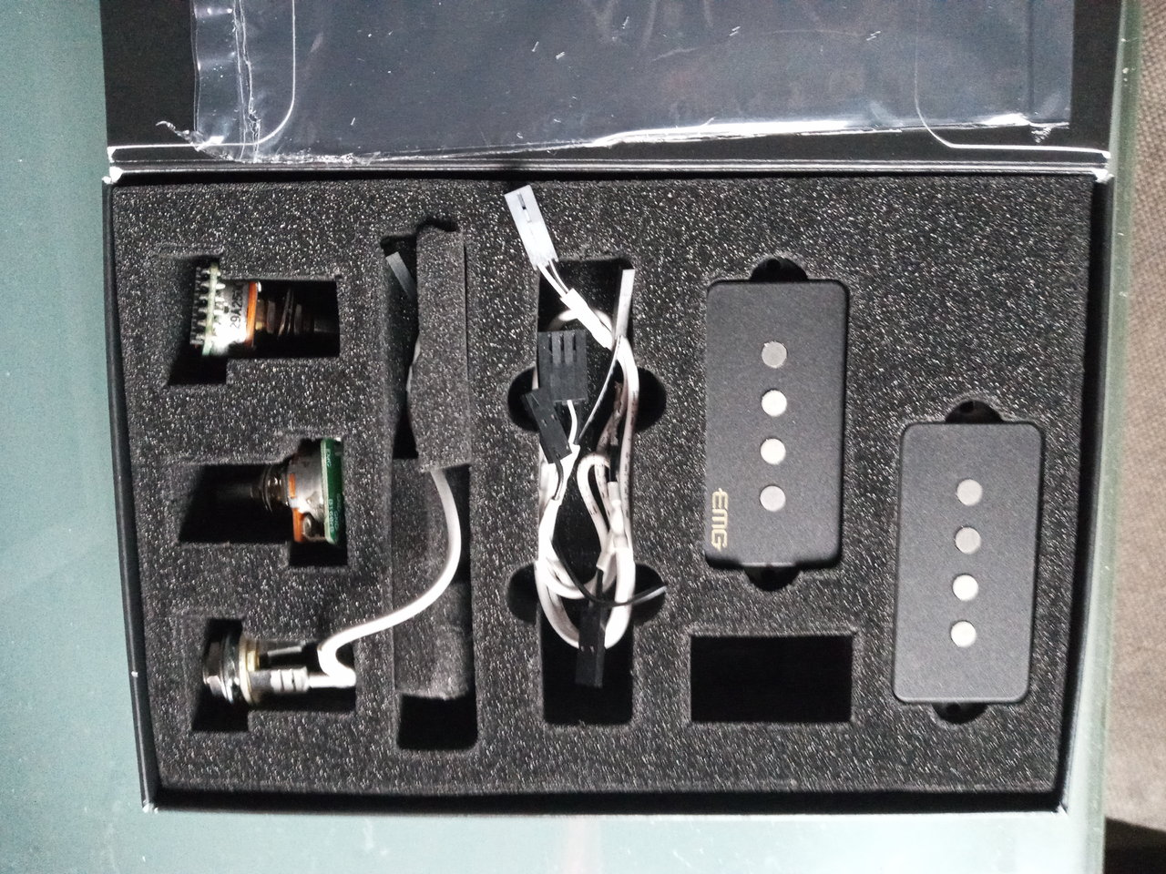 zum Verkauf steht diesmal ein EMG Geezer Butler P-Pickup incl. Potis, Buchse und Verkabelung. Der PU funktioniert einwandfrei. Die PU-Schrauben sind leider nicht dabei.
