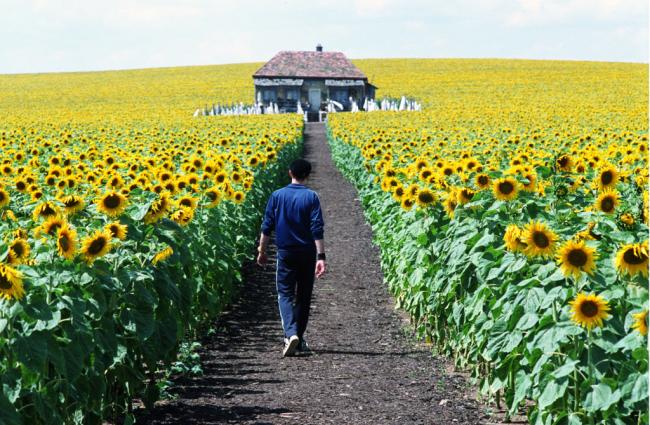 Das müsste "Sonnenblumen" aus 1970 mit Sophia Loren sein, oder ?Ein Film aus besseren Tagen: